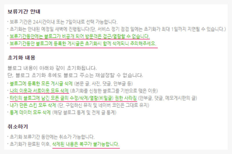 또한 네이버 블로그 초기화 이후 주의 사항이 있으니 꼭 확인 해주세요.