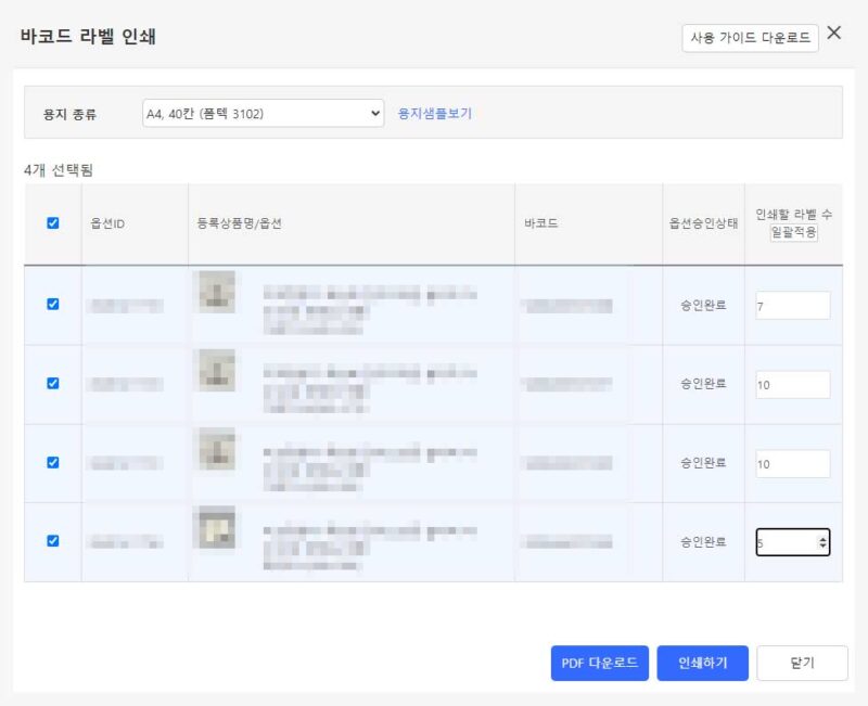 인쇄할 라벨 수를 입력하면 해당 수량만큼 라벨이 생성됩니다.