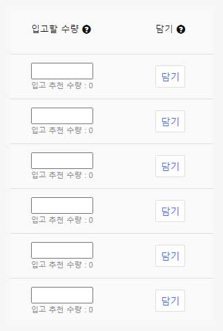 이 화면에서는 택배 입고할 상품의 수량을 입력하고 장바구니에 담듯이 담아주시면 됩니다.