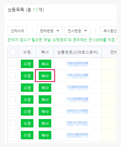 상품을 등록한 시기의 차이겠지만, 이제 막 새로 등록한 상품의 경우에는 상품 복사 기능을 이용하여 새로운 상품번호를 생성하는 방법을 추천드립니다.