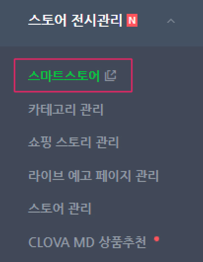 메뉴에서 스토어 전시관리 – 스마트스토어를 클릭합니다.