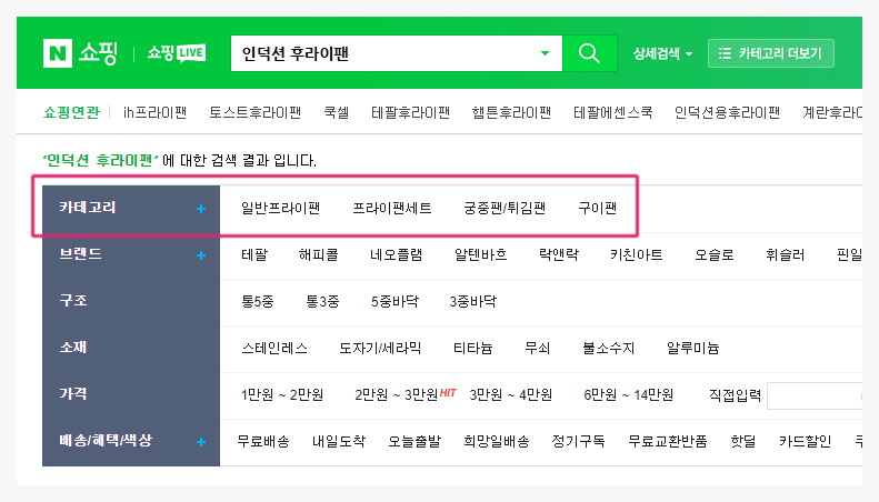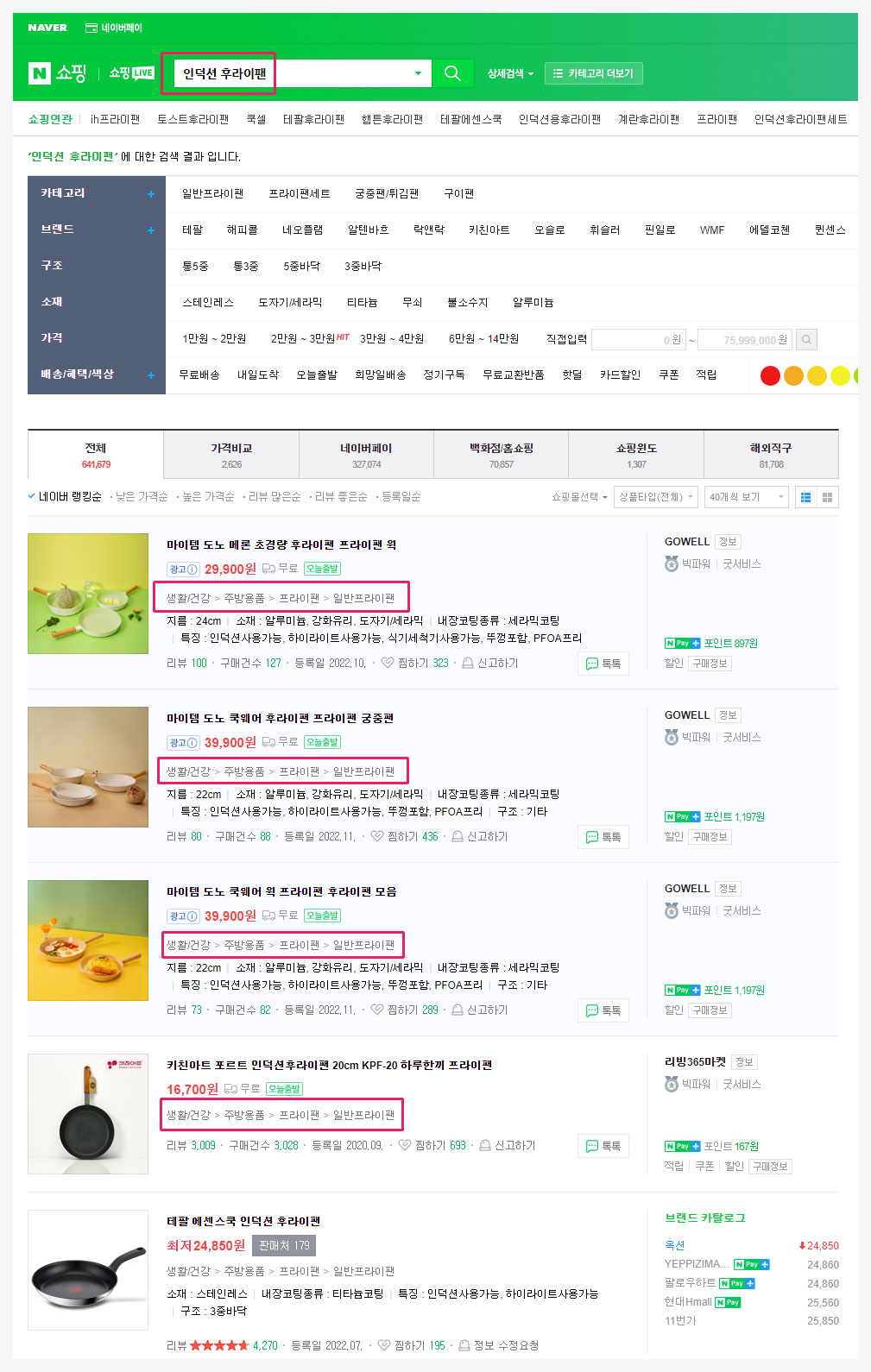 인덕션후라이팬 키워드로 검색을 해봤습니다.