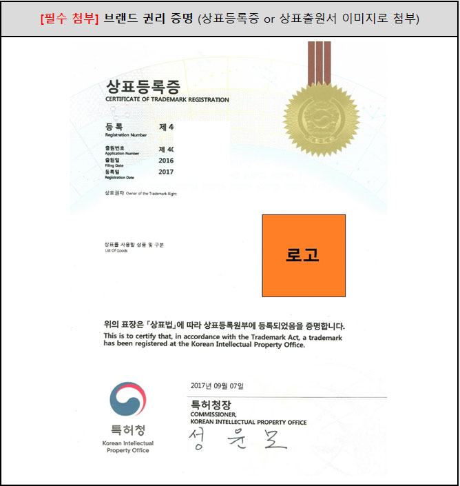 보유하고 계신 상표 등록증을 스캔받아 이미지 파일 형태로 추출해 주세요.