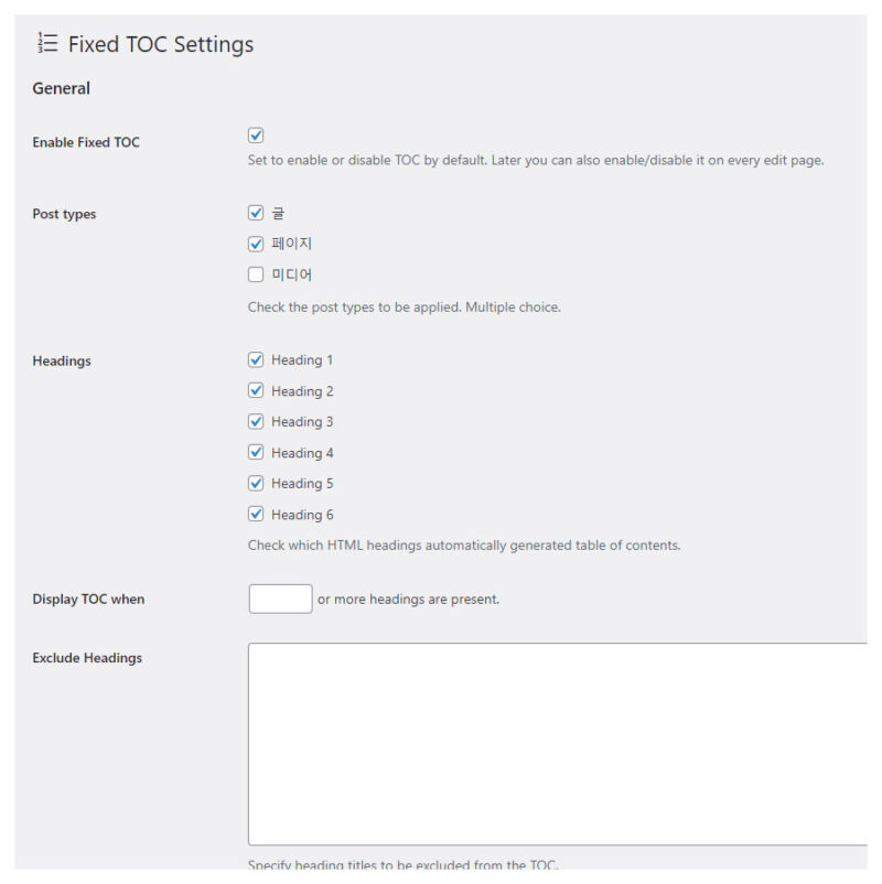 다른 목차 플러그인 역시 비슷한 형태이지만 Fixed TOC만의 특징이 뚜렷해 보입니다.