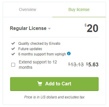 가격은 20$이며, 6개월 지원이 가능하다고 명시되어 있습니다.