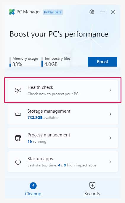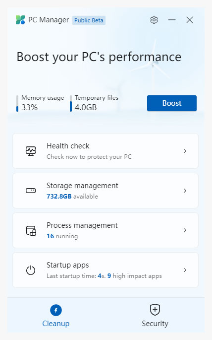 PC매니저는 마이크로소프트에서 제작하여 현재 베타테스트 중인 PC 최적화 프로그램입니다.