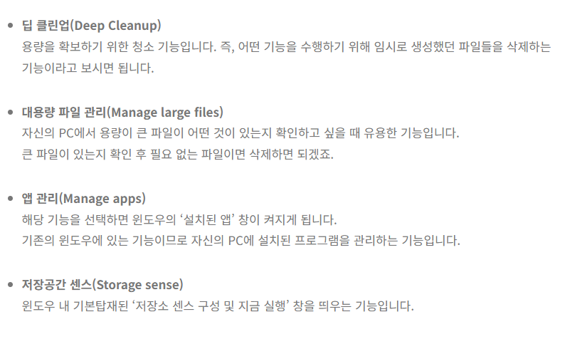 이 기능은 불필요한 캐시 파일과 로그 데이터를 삭제하고 윈도우 시작 시 자동 실행되는 프로그램을 차단할 수 있습니다. 제 PC의 경우에는 윈도우를 설치한지 2년이 넘어 많은 데이터가 쌓여 있는 것으로 확인되네요.