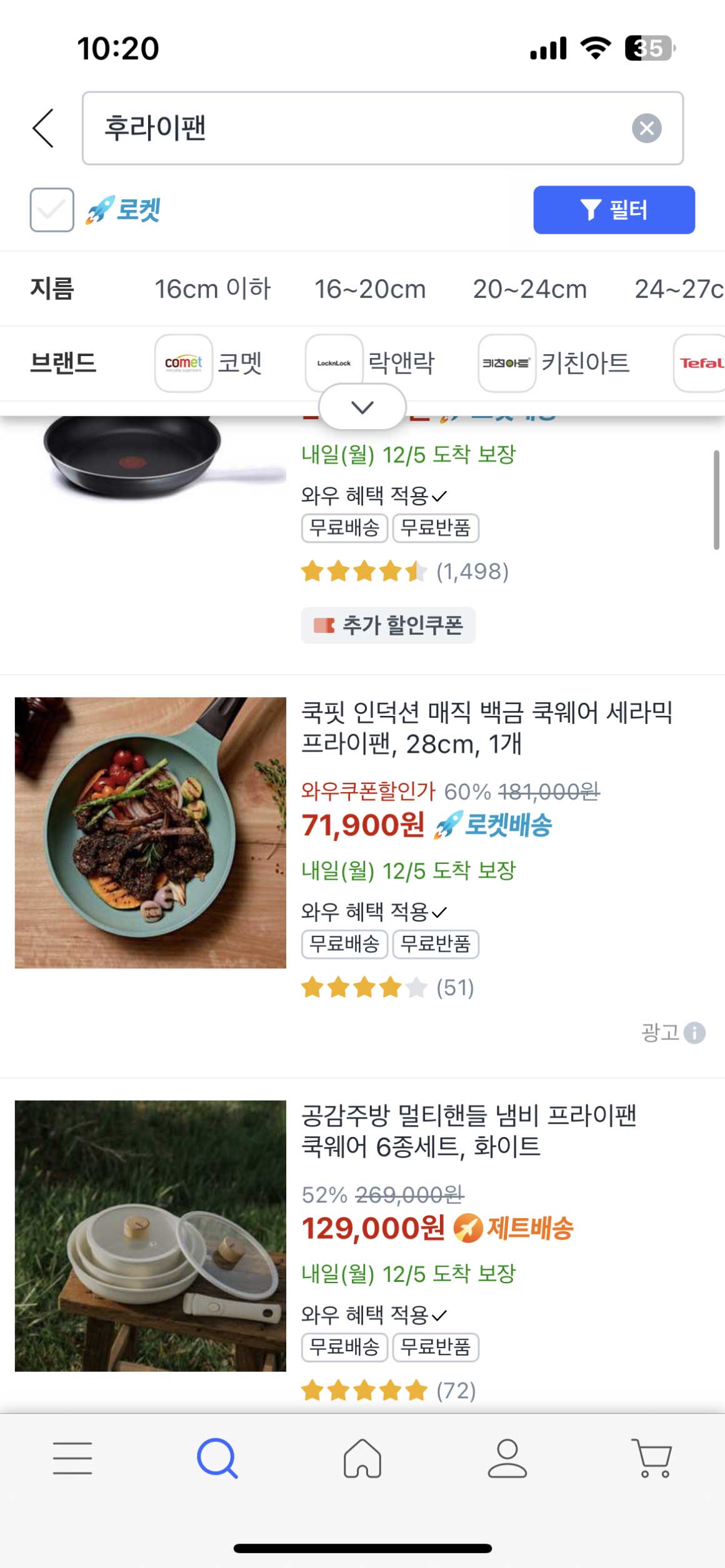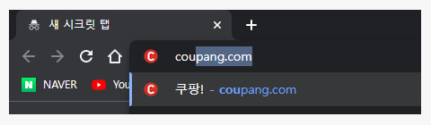 시크릿 탭에서 쿠팡에 접속하여 다시 후라이팬이라는 키워드로 검색해 보겠습니다.
