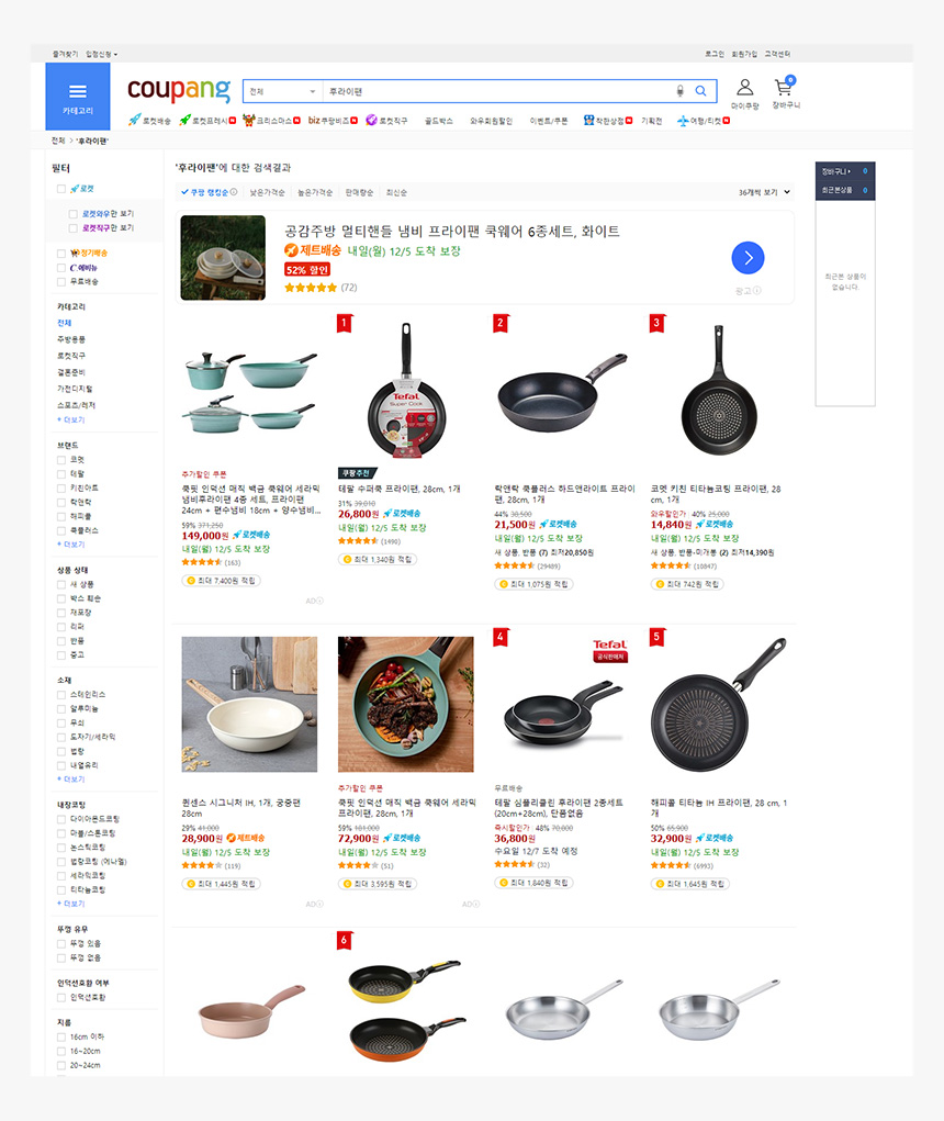 예제로 ‘후라이팬‘이라는 키워드로 검색해 보겠습니다.